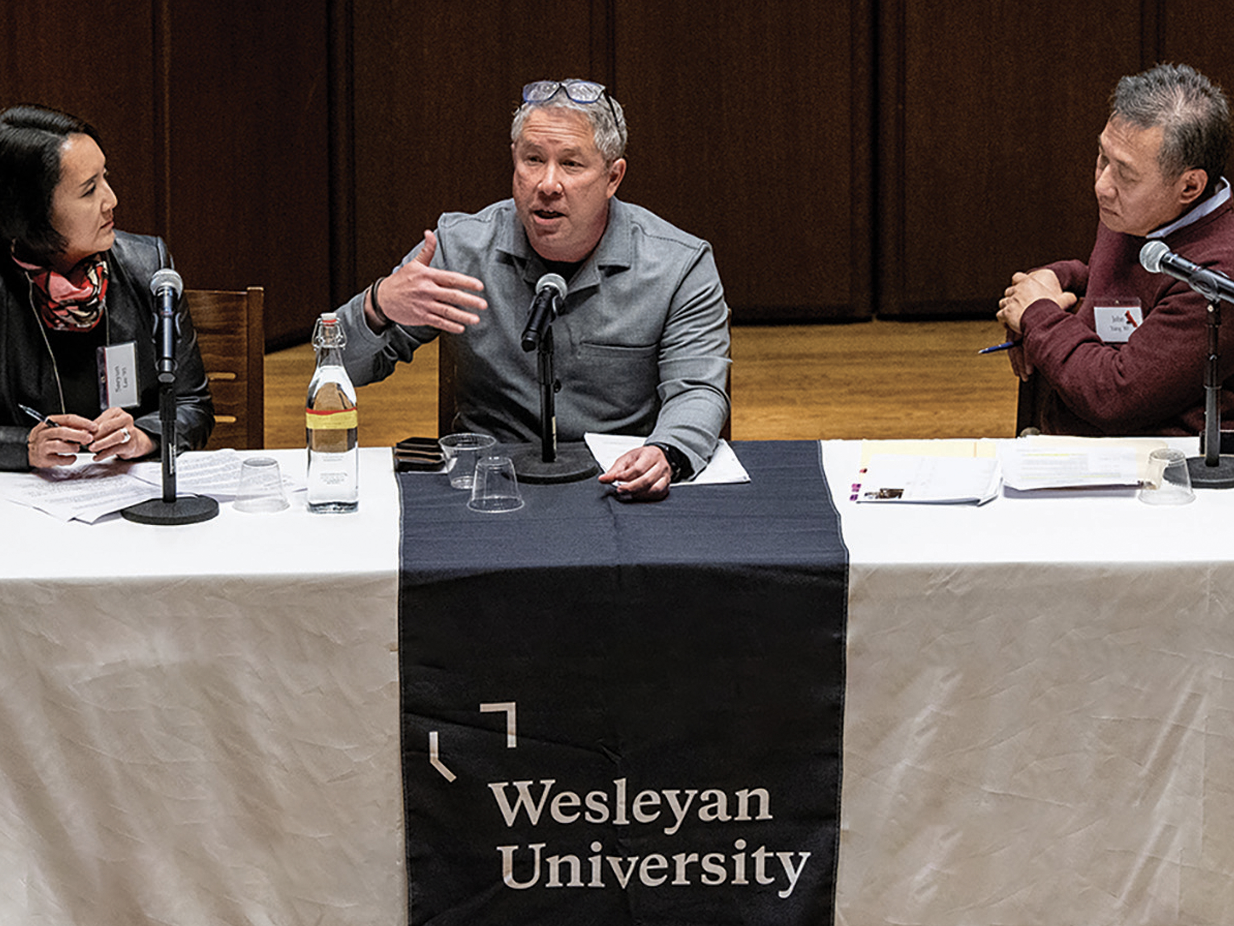 Wesleyan’s 33rd Annual Dwight L. Greene Symposium centered on the topic of “Shifting Narratives: Asian American and Pacific Islander Politics and Identity in an Age of Polarization.” Panelists John Yang ’80, anchor of PBS NewsHour Weekend and correspondent for the PBS NewsHour, and Daniel Martinez HoSang ’93, professor of American studies and political science at Yale University, discussed AAPI cultural representation in mainstream media and in education, the diversity of identities and experiences within the AAPI community, and the divisive political environment.